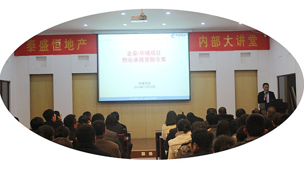 11月23日,公司在六樓會議室召開了由奧晟物業(yè)項目經(jīng)理徐道偉主講的“金泰華城項目物業(yè)承接檢查方案”專題培訓(xùn)會。公司全體員工參加了本次培訓(xùn)。