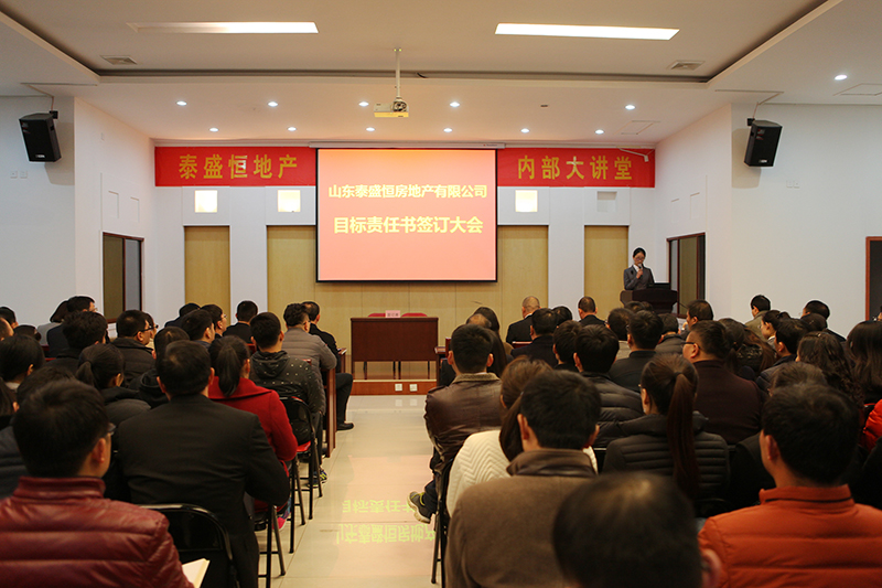 3月1日下午,泰盛恒地產(chǎn)組織全體員工在六樓會(huì)議室舉行年度目標(biāo)責(zé)任書簽訂儀式,地產(chǎn)公司全員及分子公司部分人員共計(jì)200余人參加。
