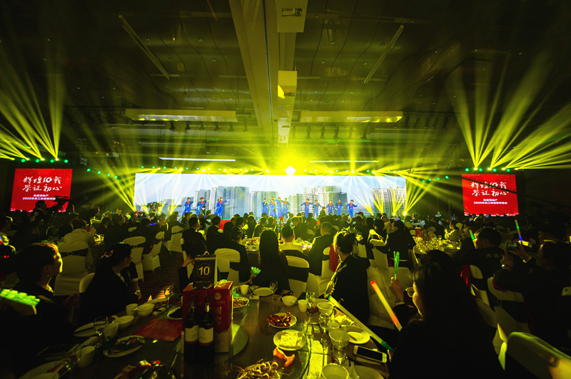 2019年是泰盛恒地產(chǎn)成立的第十個年頭。十載崢嶸歲月,注定是一段披荊斬棘、風(fēng)雨兼程的漫漫長路;十年光輝歷程,注定寫就諸多波瀾壯闊的華彩篇章。從現(xiàn)場布置、陳列,到節(jié)目、流程,整場晚會都在向泰盛恒地產(chǎn)的10年致敬,走進(jìn)現(xiàn)場,仿佛就走進(jìn)了那些難以忘懷的歲月。