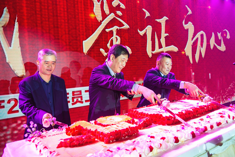 馬董、孫董、俞總共同切下象征美好未來的美味蛋糕
